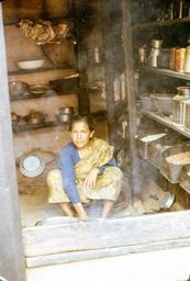 | Keywords: batti commerce tea shop teashop nepal people Date: 1968 Location: Dhankuta, Dhankuta Description: Newar woman who ran a small tea shop in the center of Dhankuta bazaar. She sold tea, eggs fried in mustard oil, chura - flattened rice -, lentils, and a few spices. She was widowed with one young son. Date: 1968 Location: Dhankuta, Dhankuta Description: Newar woman who ran a small tea shop in the center of Dhankuta bazaar. She sold tea, eggs fried in mustard oil, chura - flattened rice -, lentils, and a few spices. She was widowed with one young son. |