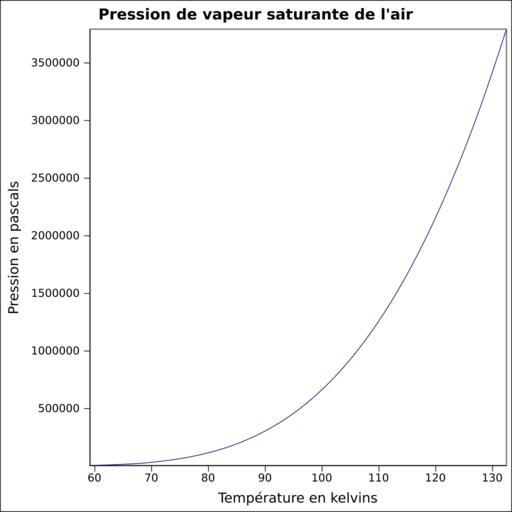 | Keywords: Pvs air.svg fr Pression de vapeur saturante calculée d'après <br/> Robert H Perry et Donald W Green Perry's Chemical Engineers' Handbook McGraw-Hill USA 1997 7e éd 2400 p ISBN 0-07-049841-5 p 2-50 own Epop 2010-06-24 Created with Gnumeric Vapor-Liquid equilibrium curves |