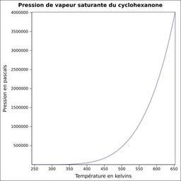 | Keywords: Pvs cyclohexanone.svg fr Pression de vapeur saturante calculée d'après <br/> Robert H Perry et Donald W Green Perry's Chemical Engineers' Handbook McGraw-Hill USA 1997 7e éd 2400 p ISBN 0-07-049841-5 p 2-50 own Epop 2010-06-24 Created with Gnumeric Vapor-Liquid equilibrium curves |