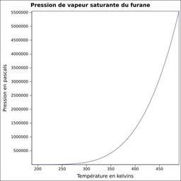Keywords: Pvs furane.svg fr Pression de vapeur saturante calculée d'après <br/> Robert H Perry et Donald W Green Perry's Chemical Engineers' Handbook McGraw-Hill USA 1997 7e éd 2400 p ISBN 0-07-049841-5 p 2-50 own Epop 2010-06-24 Created with Gnumeric Vapor-Liquid equilibrium curves