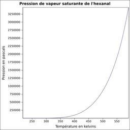 Keywords: Pvs hexanal.svg fr Pression de vapeur saturante calculée d'après <br/> Robert H Perry et Donald W Green Perry's Chemical Engineers' Handbook McGraw-Hill USA 1997 7e éd 2400 p ISBN 0-07-049841-5 p 2-50 own Epop 2010-06-24 Created with Gnumeric Vapor-Liquid equilibrium curves