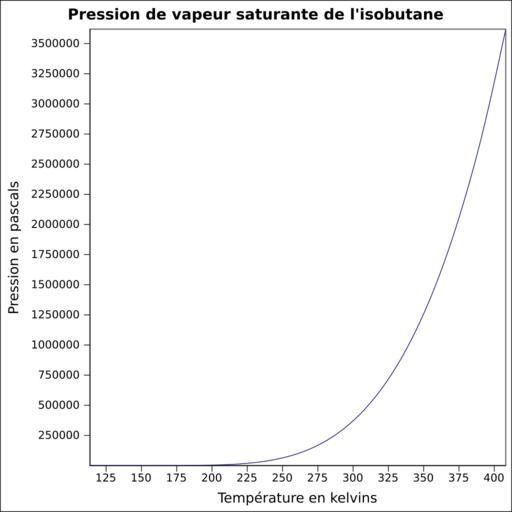 | Keywords: Pvs isobutane.svg fr Pression de vapeur saturante calculée d'après <br/> Robert H Perry et Donald W Green Perry's Chemical Engineers' Handbook McGraw-Hill USA 1997 7e éd 2400 p ISBN 0-07-049841-5 p 2-50 own Epop 2010-06-24 Created with Gnumeric Vapor-Liquid equilibrium curves |