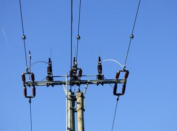 Keywords: pylon electricity high voltage powerlines blue sky wires cables mast flow