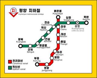 Keywords: Pyongyang Metro Line map (Hungarian).svg hu A phenjani metróvonalak térképe magyarul 2016-10-28 File Metro Pyongyang png Nima Farid Oppashi other versions cc-zero Pyongyang metro maps