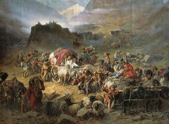 Keywords: Pyotr Nikolayevich Gruzinsky - The mountaineers leave the aul.jpg The mountaineers leave the aul Оставление го цами аула п и п иближении усских войск http //www bg-gallery ru/image php img_id 836 1872 Pyotr Nikolayevich Gruzinsky 1837-1892 PD-Art Pyotr Nikolayevich Gruzinsky Caucasian War 1817 1864 History of the Caucasus Aul Chokha with fur hat in art 1872 paintings from Russia History of Dagestan Fur fashion in 1872