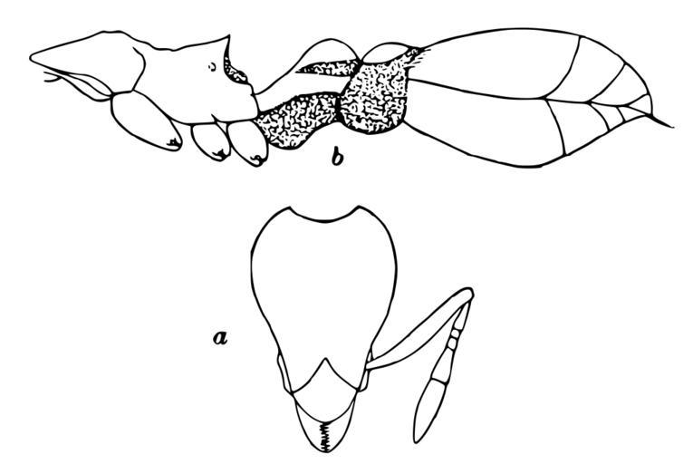 | Keywords: Pyramica.leptothrix.-.wheeler.svg Pyramica leptothrix a head of worker; b thorax and abdomen of same in profile Wheeler 1929 Ants collected by Professor F Silvestri in Formosa the Malay Peninsula and the Philippines Bollettino del Laboratorio di Zoologia Generale e Agraria della R Scuola Superiore d'Agricultura 24 27-64 http //antbase org/ants/publications/3409/3409 pdf PDF as Strumigenys leptotrix 1929 W M Wheeler pd-old PD-old Drawings of animals by William Morton Wheeler Drawings of ants Pyramica leptothrix |