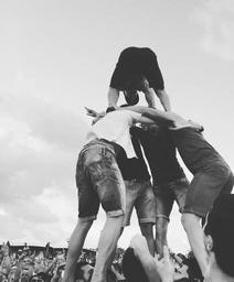 Keywords: pyramid people climbing fun black and white youth