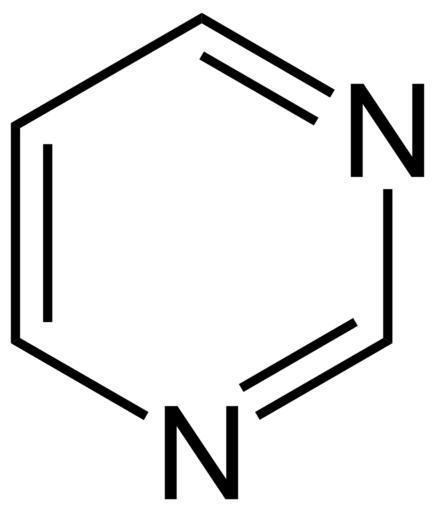 Keywords: Pyrimidin.svg Struktur von Pyrimidin Structure of pyrimidine own 2007-02-04 NEUROtiker Pyrimidine
