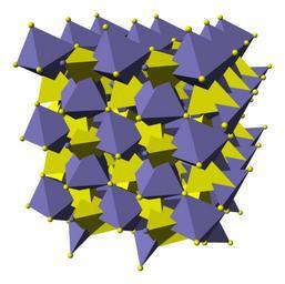 | Keywords: Pyrite-3D-polyhedra.png Polyhedral model of part of the crystal structure of pyrite iron II disulfide FeS<sub>2</sub> Own 2007-09-07 Ben Mills Benjah-bmm27 Images by Ben Mills Pyrite Crystal structures of sulfides Crystal structures of iron salts Strukturbericht C2 Unit cells |