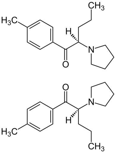 Keywords: (±)-Pyrovalerone Structural Formulae.svg en ± -Pyrovalerone_Structural_Formulae de ± -Pyrovaleron_Strukturformeln beider Enantiomere own Jü 2010-04-20 Racemate Pyrovalerone Racemic mixture