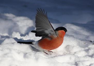 Keywords: pyrrhula kittila bird winter snow nature outside finland red breasted wings flapping beautiful macro close-up