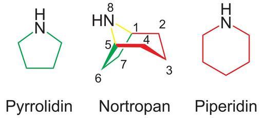 | Keywords: Pyrrolidin Tropan Piperidin.svg Vergleich der Strukturen von Pyrrolidin Nortropan und Piperidin Comparison of the structures of pyrrolidine nortropane and piperidine Comparaison des structures de la pyrrolidine du nortropane et de la pipéridine own 2007-04-07 NEUROtiker Own work all rights released Public domain Piperidine Pyrrolidine Tropane |