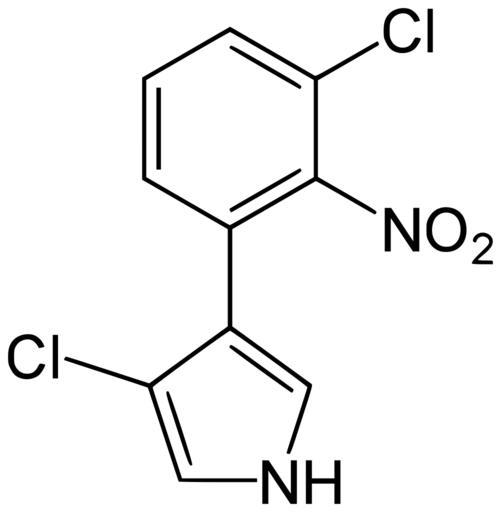 Keywords: Pyrrolnitrin.svg en Pyrrolnitrin; Pyroace; Pyrrolnitrine; Pirrolnitrin; Pyrollnitrin own Yikrazuul 2010-01-29 Antifungals