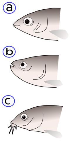 | Keywords: PyskiRyb.svg pl <br> Położenie otworu gębowego ryb <br> a - końcowe <br> b - górne <br> c - dolne de <br> Stellungen der Fischmäuler <br> a - endständig<br> b - oberständig<br> c - unterständig<br> en <br> Positions of the fish's mouths <br> a - final <br> b - upper <br> c - bottom<br> sk <br> postavenie úst rýb <br> a - koncové <br> b - horné <br> c - dolné<br> SVG fish anatomy Illustrations of fish Language-neutral diagrams | ||||