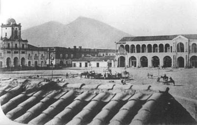 | Keywords: Pza. armas Santiago.jpg Plaza de Armas de Santiago retratada desde las esquina sur poniente actual Compañía y Ahumada desde los techos de lo que debió ser la antigua iglesia de La Compañía a un costado de la Catedral se observa el antiguo Palacio de Gobierno edificio histórico y actual sede de la Municipalidad La plaza no tenía la frondosa vegetación que hoy día tiene y en su centro se puede apreciar un abrevadero para los animales Al fondo se divisa un Cerro San Cristóbal desprovisto de vegetación http //www mav cl/foto/patrimonio-foto/img/foto001 jpg Museo de arte Visual Siglo XIX Desconocido - Archivo Fotográfico Andrés Bello de la Universidad de Chile PD-Chile PD-old Plaza de Armas de Santiago de Chile Black and white photographs of cities Feeding troughs |