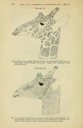 | Keywords: PZSL1907Page124.png Giraffa reticulatus Giraffa camelopardalis giraffa <small>von Schreber 1784</small> en Head of Somali Giraffe specimen in Natural History Museum from left lateral showing coloration above and with coloration ignored to show direction of hair growth below Proceedings of the Zoological Society of London http //archive org/details/proceedingsofzoo19071446zool vol 1907 issue 1 http //archive org/stream/proceedingsofzoo19071446zool page/124/mode/1up page 124 1907 E Ray Lankester text PD-old PZSL 1907-1 Collections of the Natural History Museum London Giraffa camelopardalis reticulata head |
