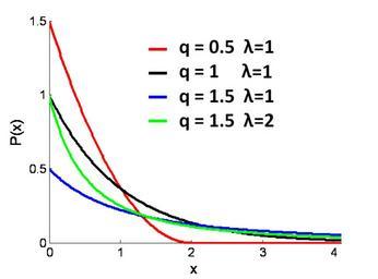 | Keywords: Qexponential.png en Probability density for members of the q-exponential distribution family Created Purple Post-its Cc-zero <source lang 'matlab'> function plotqexponential x 0 01 4 1; figure; hold on; plot x qexp_dist x 0 5 1 '-r' 'LineWidth' 2 5 plot x qexp_dist x 1 1 '-k' 'LineWidth' 2 5 plot x qexp_dist x 1 5 1 '-b' 'LineWidth' 2 5 plot x qexp_dist x 1 5 2 '-g' 'LineWidth' 2 5 function y qexp_dist x q lambda y 2-q lambda qexp -lambda x q ; function y qexp x q if q 1 y exp x ; else y 1+ 1-q x 1/ 1-q ; end y 1+ 1-q x < 0 0; </source> Probability distributions |