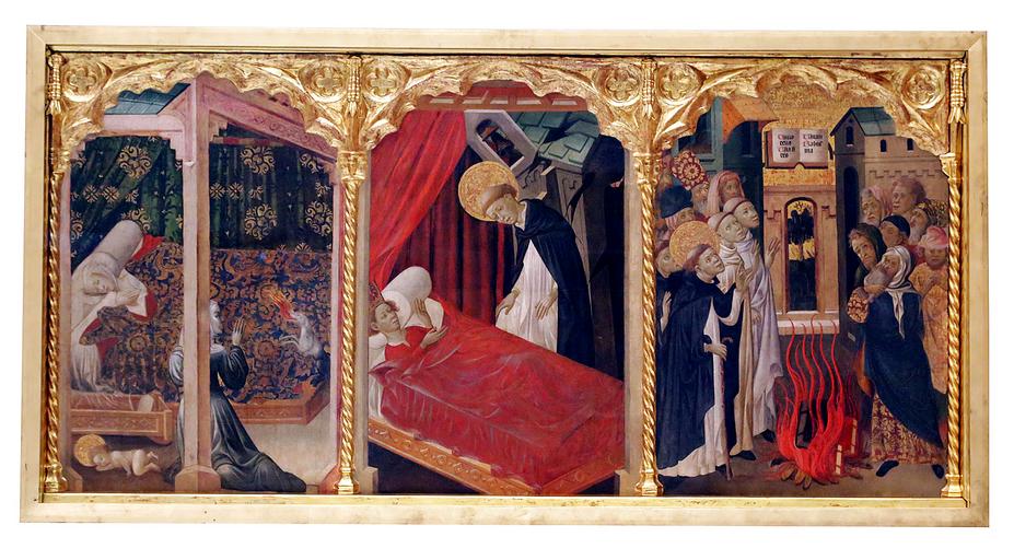| Keywords: Qk-Pere-Nicolau.jpg Artwork Creator Pere Nicolau La obra representa tres escenas de la vida de Santo Domingo de Guzmán el fundador de la Orden de los dominicos Principios del siglo XV oil on canvas Size cm 172 88 Institution Museo de Bellas Artes de Valencia http //www cult gva es/mbav/data/es06090 htm Procede del retablo mayor del convento de Santo Domingo de Valencia accession number 238 own Quinok PD-old-100 cc-by-sa-4 0 Paintings of Saint Dominic in Spain 15th-century paintings of Saint Dominic Paintings by Pere Nicolau in the Museu de Belles Arts de València 15th-century paintings in the Museu de Belles Arts de València |