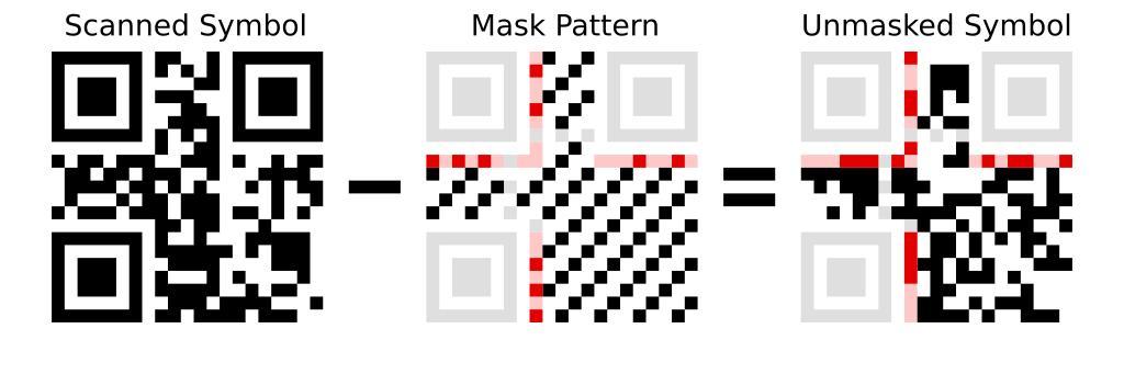Keywords: QR Code Masking Example.svg en Removing the mask patterns from an example QR code 2011-09-13 own Bobmath cc-zero Uploaded with UploadWizard QR Code Diagrams