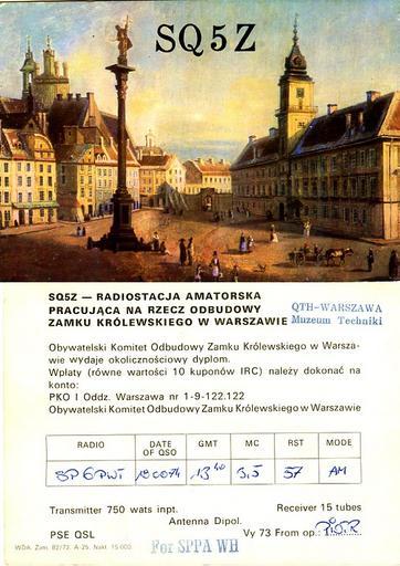 Keywords: QSL-sq5z.jpg pl Polish QSL card own Julo 1974 Julo QSL cards amateur radio Exterior of the Royal Castle Warsaw