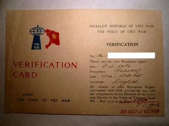 Keywords: QslVietnam.jpg en QSL card of a Vietnamese shortwave radio station from the 1980'ies Own Ramessos 2008-12 QSL cards