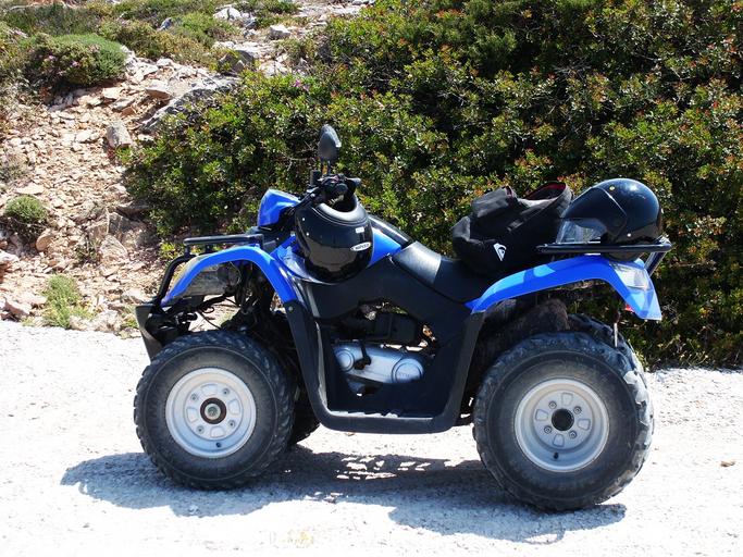 Keywords: quad blue four wheels offroad helmet wheels speed promenade roll over