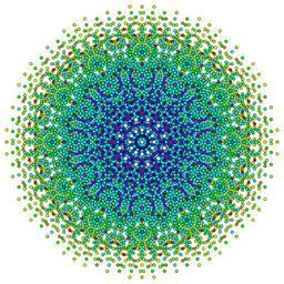 | Keywords: Quadrirectified 4 21 polytope Coxeter plane.svg en wikipedia 2011 October 16 Gosset 4_21_polytope graph in Coxeter plane vertices only overlaps by color 8 16 24 32 48 64 96 120 128 192 288 07 36 19 February 2010 UTC I Tom Ruen talk created this work entirely by myself <br />Transferred from http //en wikipedia org en wikipedia Tom Ruen talk en wikipedia Tomruen Original upload log page en wikipedia Quadrirectified_4_21_polytope_Coxeter_plane svg 2010-02-19 07 36 Tomruen 800×800 282374 bytes <nowiki> Quadrirectified Gosset 4_21_polytope graph in Coxeter plane vertices only overlaps by color 8 16 24 32 48 64 96 120 128 192 288 I ~~~ created this work entirely by myself ~~~~</nowiki> Set of colored Coxeter plane graphs; many vertices |