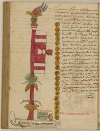 | Keywords: Quahuitlehua, Raising of the Trees, the First Month of the Aztec Solar Calendar WDL6716.png Artwork ru Това Хуан де около 1546 г около 1626 г fr Tovar Jean de 1546-1626 env en Tovar Juan de circa 1546-circa 1626 zh 胡安·德·托瓦尔,约 1546 年 - 约 1626 年 pt Tovar Juan de por volta de 1546-por volta de 1626 ar خوان دو توفار، حوالي 1546-حوالي 1626 es Tovar Juan de circa 1546-circa 1626 ru Атлькауало ост де евьев 1-й месяц солнечного календа я ацтеков fr Quahuitlehua pousse des arbres premier mois du calendrier solaire aztèque en Quahuitlehua Raising of the Trees the First Month of the Aztec Solar Calendar zh 阿兹特克太阳历的第 1 个 种树 pt Quahuitlehua crescimento das árvores o primeiro mês do calendário solar asteca ar كاويتليوا، زراعة الأشجار، وهو الشهر الأول من التقويم الشمسي الأزتكي ru Кодекс Това а авто ом кото ого считается мексиканский иезуит XVI века Хуан де Това соде жит под обную инфо мацию об об ядах и це емониях ацтеков известных также как мешика Кодекс п оиллюст и ован 51 аква ельным исунком на полную ст аницу Рисунки в кото ых наблюдается значительное влияние пиктог афических укописей доколониальных в емен обладают исключительными художественными достоинствами Рукопись состоит из т ех азделов В пе вом азделе описана исто ия путешествий ацтеков до п ибытия испанцев Вто ой аздел п едставляет собой иллюст и ованную исто ию ацтеков В т етьем азделе находится календа ь Това а в кото ом п ослеживается календа ный цикл ацтеков с месяцами неделями днями воск есными буквами и елигиозными п аздниками х истианского 365-дневного года а иллюст ации из т етьего аздела изоб ажен флаг с к асными и белыми полосами на к асном шесте ук ашенный многочисленными цветными пе ьями связками куку узы и ф уктов; ядом на исован квад ат с двумя ыбами Этот месяц оп еделяемый как фев аль называется Атлькауало ост де евьев или п ек ащение вод В укописи этот же месяц называется куауитлеуа атлькуало шиломанистли коуаилуитль атльмотсасуайя и шочситскило есяц был посвящен Тлалоку богу дождя кото ому п иносили в же тву детей топя их хотя коммента ий в данной укописи об этом об яде не упоминает <br>Календа ь ацтеков; Боги ацтеков; Ацтеки; Календа и; Кодекс; Индейцы ексики; Ко енные на одности; езоаме ика; Кодекс Това а fr Le codex Tovar attribué à Jean de Tovar jésuite mexicain du XVI<sup>e</sup> siècle contient des informations détaillées sur les rites et les cérémonies des Aztèques également connus sous le nom de Mexicas Il est illustré de 51 aquarelles de la taille d'une page Fortement influencées par les manuscrits pictographiques de la période précontact ces peintures sont d'une qualité artistique exceptionnelle Le manuscrit est divisé en trois sections La première section contient une histoire des voyages des Aztèques avant l'arrivée des Espagnols La deuxième section est une histoire illustrée des Aztèques Dans la troisième section le calendrier de Tovar transcrit un calendrier aztèque continu avec les mois les semaines les jours les lettres dominicales et les fêtes liturgiques d'une année chrétienne de 365 jours Cette illustration extraite de la troisième section représente un étendard doté de bandes rouges et blanches hissé sur un mât rouge et décoré d'une crête de plumes multicolores d'épis de maïs et de fruits Un carré contenant deux poissons est également dessiné Ce mois assimilé à février est appelé Quahuitlehua pousse des arbres ou arrêt de l'eau Il est également connu sous le nom d'Atlcahualo d'Atlcualo de Xilomaniztli de Cohuailhuitl d'Atlmotzacuaya ou de Xochzitzquilo Ce mois est dédié à Tlaloc dieu de la pluie au nom de qui des enfants étaient sacrifiés par noyade bien que le commentaire ici ne mentionne pas ce rituel <br>Calendrier aztèque; Dieux aztèques; Aztèques; Calendriers; Codex; Indiens du Mexique; Peuples autochtones; Méso-Amérique; Codex Tovar en The Tovar Codex attributed to the 16th-century Mexican Jesuit Juan de Tovar contains detailed information about the rites and ceremonies of the Aztecs also known as Mexica The codex is illustrated with 51 full-page paintings in watercolor Strongly influenced by pre-contact pictographic manuscripts the paintings are of exceptional artistic quality The manuscript is divided into three sections The first section is a history of the travels of the Aztecs prior to the arrival of the Spanish The second section is an illustrated history of the Aztecs The third section contains the Tovar calendar which records a continuous Aztec calendar with months weeks days dominical letters and church festivals of a Christian 365-day year This illustration from the third sect