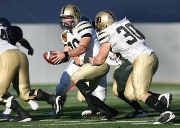 Keywords: quarterback handoff offense american football running back back football player competition uniform running ball sport headgear male college athlete game
