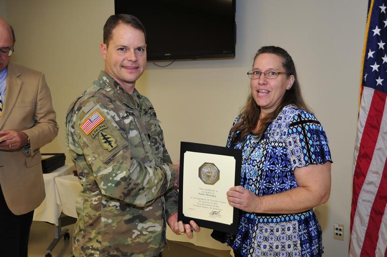 | Keywords: fort a. p. hill fortaphill awards army awards armyawards employees governmernt employees governmerntemployees army employees armyemployees people groupshot indoor LTC Andrew Q. Jordan, commander, U.S. Army Garrison, Fort A.P. Hill, and his leadership team hosted the installation's quarterly awards ceremony, Oct. 18. The installation workforce gathered at the Training Support Center and joined in recognizing some 50 employees for time in service, meritorious achievement and dedication to the installation's mission. Hooah! LTC Andrew Q. Jordan, commander, U.S. Army Garrison, Fort A.P. Hill, and his leadership team hosted the installation's quarterly awards ceremony, Oct. 18. The installation workforce gathered at the Training Support Center and joined in recognizing some 50 employees for time in service, meritorious achievement and dedication to the installation's mission. Hooah! |