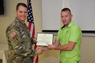 | Keywords: fort a. p. hill fortaphill awards army awards armyawards employees governmernt employees governmerntemployees army employees armyemployees people groupshot indoor LTC Andrew Q. Jordan, commander, U.S. Army Garrison, Fort A.P. Hill, and his leadership team hosted the installation's quarterly awards ceremony, Oct. 18. The installation workforce gathered at the Training Support Center and joined in recognizing some 50 employees for time in service, meritorious achievement and dedication to the installation's mission. Hooah! LTC Andrew Q. Jordan, commander, U.S. Army Garrison, Fort A.P. Hill, and his leadership team hosted the installation's quarterly awards ceremony, Oct. 18. The installation workforce gathered at the Training Support Center and joined in recognizing some 50 employees for time in service, meritorious achievement and dedication to the installation's mission. Hooah! |