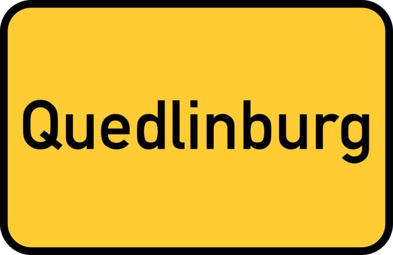 Keywords: quedlinburg medieval harz saxony-anhalt romanesque town sign city limits sign entry sign gateway sign traffic road sign street sign directory yellow germany direction unesco world heritage site