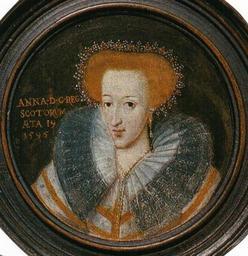 | Keywords: stuart english royalty englishroyalty portrait 16th century 16thcentury 17th century 17thcentury scotland united kingdom unitedkingdom britain Anne of Denmark (12 December 1574 – 2 March 1619) was queen consort of Scotland, England, and Ireland as the wife of King James VI and I.[1] The second daughter of King Frederick II of Denmark, Anne married James in 1589 at the age of fourteen and bore him three children who survived infancy, including the future Charles I. She demonstrated an independent streak and a willingness to use factional Scottish politics in her conflicts with James over the custody of Prince Henry and his treatment of her friend Beatrix Ruthven. Anne appears to have loved James at first, but the couple gradually drifted and eventually lived apart, though mutual respect and a degree of affection survived.[2] In England, Anne shifted her energies from factional politics to patronage of the arts and constructed a magnificent court of her own, hosting one of the richest cultural salons in Europe.[3] After 1612, she suffered sustained bouts of ill health and gradually withdrew from the centre of court life. Though she was reported to have died a Protestant, evidence suggests that she may have converted to Catholicism at some stage in her life.[4] Historians have traditionally dismissed Anne as a lightweight queen, frivolous and self-indulgent.[5] However, recent reappraisals acknowledge Anne's assertive independence and, in particular, her dynamic significance as a patron of the arts during the Jacobean age Anne of Denmark (12 December 1574 – 2 March 1619) was queen consort of Scotland, England, and Ireland as the wife of King James VI and I.[1] The second daughter of King Frederick II of Denmark, Anne married James in 1589 at the age of fourteen and bore him three children who survived infancy, including the future Charles I. She demonstrated an independent streak and a willingness to use factional Scottish politics in her conflicts with James over the custody of Prince Henry and his treatment of her friend Beatrix Ruthven. Anne appears to have loved James at first, but the couple gradually drifted and eventually lived apart, though mutual respect and a degree of affection survived.[2] In England, Anne shifted her energies from factional politics to patronage of the arts and constructed a magnificent court of her own, hosting one of the richest cultural salons in Europe.[3] After 1612, she suffered sustained bouts of ill health and gradually withdrew from the centre of court life. Though she was reported to have died a Protestant, evidence suggests that she may have converted to Catholicism at some stage in her life.[4] Historians have traditionally dismissed Anne as a lightweight queen, frivolous and self-indulgent.[5] However, recent reappraisals acknowledge Anne's assertive independence and, in particular, her dynamic significance as a patron of the arts during the Jacobean age |