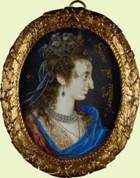 Keywords: stuart english royalty englishroyalty portrait 16th century 16thcentury 17th century 17thcentury scotland united kingdom unitedkingdom britain Anne of Denmark (12 December 1574 – 2 March 1619) was queen consort of Scotland, England, and Ireland as the wife of King James VI and I.[1] The second daughter of King Frederick II of Denmark, Anne married James in 1589 at the age of fourteen and bore him three children who survived infancy, including the future Charles I. She demonstrated an independent streak and a willingness to use factional Scottish politics in her conflicts with James over the custody of Prince Henry and his treatment of her friend Beatrix Ruthven. Anne appears to have loved James at first, but the couple gradually drifted and eventually lived apart, though mutual respect and a degree of affection survived.[2] In England, Anne shifted her energies from factional politics to patronage of the arts and constructed a magnificent court of her own, hosting one of the richest cultural salons in Europe.[3] After 1612, she suffered sustained bouts of ill health and gradually withdrew from the centre of court life. Though she was reported to have died a Protestant, evidence suggests that she may have converted to Catholicism at some stage in her life.[4] Historians have traditionally dismissed Anne as a lightweight queen, frivolous and self-indulgent.[5] However, recent reappraisals acknowledge Anne's assertive independence and, in particular, her dynamic significance as a patron of the arts during the Jacobean age. Anne of Denmark (12 December 1574 – 2 March 1619) was queen consort of Scotland, England, and Ireland as the wife of King James VI and I.[1] The second daughter of King Frederick II of Denmark, Anne married James in 1589 at the age of fourteen and bore him three children who survived infancy, including the future Charles I. She demonstrated an independent streak and a willingness to use factional Scottish politics in her conflicts with James over the custody of Prince Henry and his treatment of her friend Beatrix Ruthven. Anne appears to have loved James at first, but the couple gradually drifted and eventually lived apart, though mutual respect and a degree of affection survived.[2] In England, Anne shifted her energies from factional politics to patronage of the arts and constructed a magnificent court of her own, hosting one of the richest cultural salons in Europe.[3] After 1612, she suffered sustained bouts of ill health and gradually withdrew from the centre of court life. Though she was reported to have died a Protestant, evidence suggests that she may have converted to Catholicism at some stage in her life.[4] Historians have traditionally dismissed Anne as a lightweight queen, frivolous and self-indulgent.[5] However, recent reappraisals acknowledge Anne's assertive independence and, in particular, her dynamic significance as a patron of the arts during the Jacobean age.