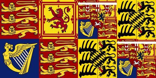 Keywords: Queen Mary of Teck Standard.svg Inkscape Royal Standard of Mary of Teck Queen Consort of George V of the United Kingdom and the British Dominions 1910-1936 and British Queen Dowager 1936-1953 Blazon Quarterly I and IV Gules three lions passant guardant in pale Or for England ; II Or a lion rampant within a double tressure flory-counter-flory Gules for Scotland ; III Azure a harp Or stringed Argent for Ireland All impaling quarterly I and IV grand-quarterly i and iv Gules three lions passant guardant in pale Or for England ; ii Or a lion rampant within a double tressure flory-counter-flory Gules for Scotland ; iii Azure a harp Or stringed Argent for Ireland ; overall an escutcheon tierced per pale and per chevron for Hanover i Gules two lions passant guardant Or for Brunswick ii Or a semy of hearts Gules a lion rampant Azure for Lunenburg iii Gules a horse courant Argent for Westfalen all differenced with a label of three points argent two hearts a Latin cross two hearts all gules; II and III Or three half-branches of hart sable for Württemberg impaling Or three lions passant sable for Hohenstaufen overall an inescutcheon couped chapé-chaussé or and argent http //flagspot net/flags/gb_roge5 html mary Tincture Change of the Württemberg's escutcheon from 50px 50px SVG elements from 50px 50px 50px 50px 50px and 50px 2008-02-26 Jake the Editor Man Queen Mary of the United Kingdom 1 Royal Standards of Consorts of the United Kingdom Mary Royal Standards of deceased members of the royal family of the United Kingdom Mary Black blue red white yellow flags Flags with harps Flags with hearts Flags with horses Flags with lions facing left Flags with two crosses Flags with two crowns Heraldic banners Coats of arms of the house of Teck