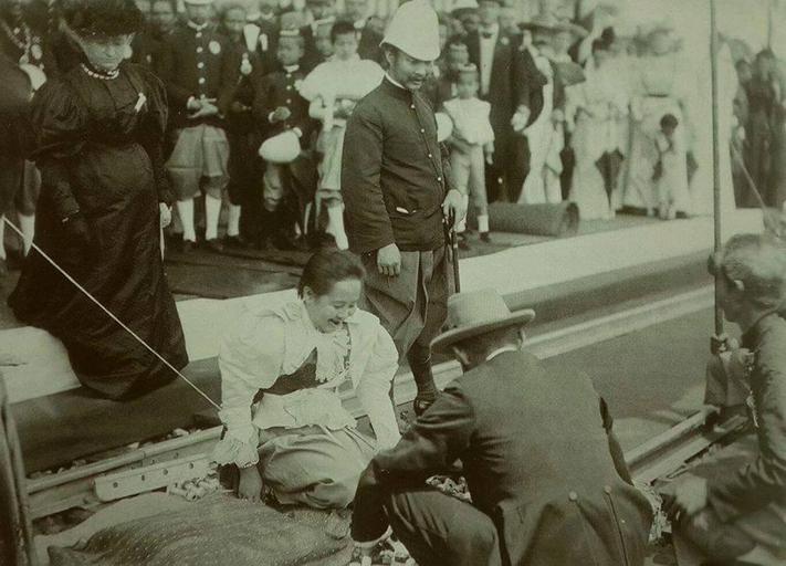 | Keywords: Queen Saovabha Phongsri opening of the railway line.jpg Queen Saovabha Phongsri and King Chulalongkorn opening of the railway line in 1900 th ไฟล์ สม๠ด็จพระศรีพัชรินทราบรมราชินีนาถ ทรง๠ปิดทางรถไฟ jpg 1900 author PD-Thailand Queen Saovabha Phongsri |