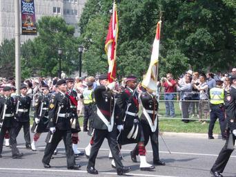 | Keywords: Queen's Park Guard of Honour 3.JPG en Guard of Honour own Ibagli 2010-07-06 2010 royal tour of Canada by Elizabeth II in Toronto Army flags of Canada Colour guards of the Canadian Army Events at Queen's Park Military parades in Canada Photographs of military flags of Canada Parades in Toronto |