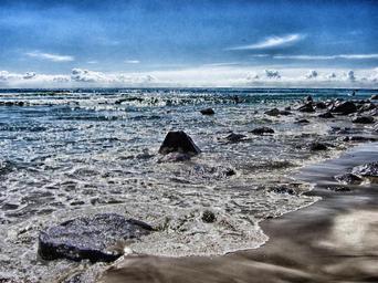 Keywords: queensland australia sea ocean water rocks beach waves surf sky clouds horizon nature outside