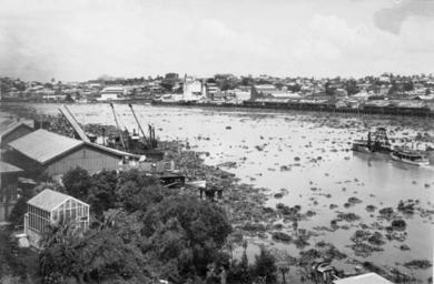 | Keywords: Queensland State Archives 218 Brisbane River with water hyacinth washed down in flood waters from the Bremer River 17 March 1937.png en Brisbane River with water hyacinth washed down in flood waters from the Bremer River 1937-03-17 http //www archivessearch qld gov au/Image/DigitalImageDetails aspx ImageId 218 Preferred citation Queensland State Archives Digital Image ID 218 ID label 1009687 http //www archivessearch qld gov au/Search/AgencyDetails aspx AgencyID 1976 Agriculture And Stock Department Publicity Branch en Copyright expired Information field Decade 1930-1939 Information field Place en Brisbane City Information field Material Type en Photographic material Information field Type en Image PD-Australia QSA media uploaded by User 99of9 Photographic material from the Queensland State Archives 1937 in Queensland Brisbane River Brisbane CBD Floods in South Brisbane Floods and water hyacinth Eichhornia crassipes |