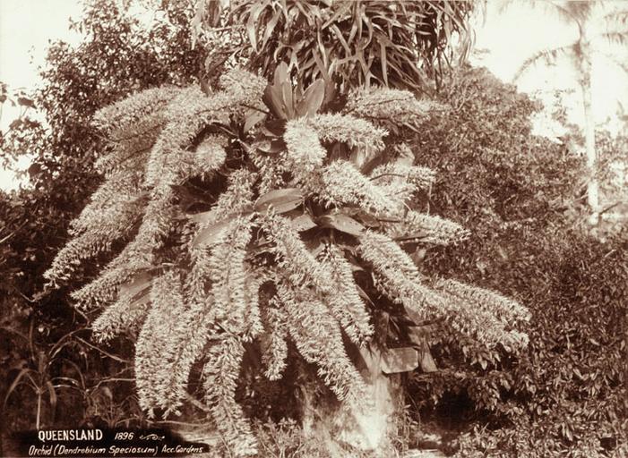 | Keywords: Queensland State Archives 2202 King Orchid Dendrobium speciosum at Acclimatization Gardens 1896.png en King Orchid Dendrobium speciosum at Acclimatization Gardens Also known as the Acclimatization Society of Queensland Gardens 1896 http //www archivessearch qld gov au/Image/DigitalImageDetails aspx ImageId 2202 Preferred citation Queensland State Archives Digital Image ID 2202 ID label 1108385 http //www archivessearch qld gov au/Search/AgencyDetails aspx AgencyID 1993 Lands Department Survey of Lands Branch Photographic Branch en Copyright expired Information field Decade 1890-1899 Information field Place en Brisbane City Information field Keywords en Botanical gardens Information field Material Type en Photographic material Information field Type en Image PD-Australia QSA media uploaded by User 99of9 Photographic material from the Queensland State Archives 1896 in Brisbane Acclimatisation Gardens Brisbane Dendrobium speciosum |