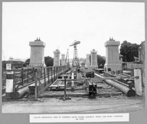 | Keywords: Queensland State Archives 3695 South approach end of hammer head crane runway steel for span 1 stacked on site Brisbane 1 September 1936.png en South approach end of hammer head crane runway steel for span 1 stacked on site Brisbane Story Bridge construction 1936-09-01 http //www archivessearch qld gov au/Image/DigitalImageDetails aspx ImageId 3695 Preferred citation Queensland State Archives Digital Image ID 3695 ID label 1245609 http //www archivessearch qld gov au/Search/AgencyDetails aspx AgencyID 1995 Lands Department Survey Office Cartographic Branch Photographic Section en Copyright expired Information field Decade 1930-1939 Information field Place en Brisbane City Information field Material Type en Photographic material Information field Type en Image PD-Australia QSA media uploaded by User 99of9 Story Bridge construction Photographic material from the Queensland State Archives 1936 in Queensland Construction cranes in Australia Steel Bridge supports |