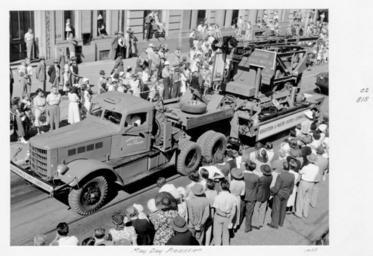 | Keywords: Queensland State Archives 4769 May Day Procession May 1953.png en May Day Procession The photograph depicts the Irrigation Water Supply Commission float 1953-05 http //www archivessearch qld gov au/Image/DigitalImageDetails aspx ImageId 4769 Preferred citation Queensland State Archives Digital Image ID 4769 ID label 1272214 http //www archivessearch qld gov au/Search/AgencyDetails aspx AgencyID 1995 Lands Department Survey Office Cartographic Branch Photographic Section en Copyright expired Information field Decade 1950-1959 Information field Place en Brisbane City Information field Material Type en Photographic material Information field Type en Image This photo was taken in Queen Street looking toward the Macarthur Chambers visible upper right of the photo PD-Australia QSA media uploaded by User 99of9 Photographic material from the Queensland State Archives 1953 in Queensland Queensland Irrigation and Water Supply Commission Floats in Australia Parades in Queensland Labour Day in Queensland Queen Street Brisbane |