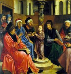 | Keywords: Quentin Metsys - Menino Jesus entre os Doutores.jpg Artwork Creator Quinten Massijs I Jesus Among the Doctors Menino Jesus entre os Doutores - 1509 1511 technique oil canvas cm 62 5 80 5 Institution Museu Nacional de Arte Antiga http //www matriznet ipmuseus pt/MatrizNet/Objectos/ObjectosConsultar aspx IdReg 250975 EntSep 5 gotoPosition Museu Nacional de Arte Antiga Other versions PD-old-100 Paintings by Quinten Massijs I Paintings of Jesus Christ among the doctors 1510s paintings Flemish paintings in the Museu Nacional de Arte Antiga Paintings of church interiors 16th-century oil on canvas paintings 16th-century paintings of Jesus Christ Male fur headgear in art Paintings by Quinten Massijs with fur Squirrel clothing in art Columns in art 1500s paintings People with books in art 16th-century paintings in the Museu Nacional de Arte Antiga |