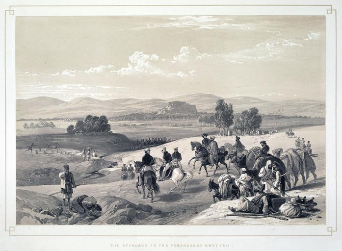 | Keywords: Quetta Before 1800..JPG Balochistan Pakistan fa «نزدیک شدن به قلعهٔ کوته» جنگ اول آنگل ها و افغان ها، شهر کوته در بلوچستان پاکستان http //www bl uk/onlinegallery/onlineex/apac/other/019xzz000000614u00008000 html British Library Online Gallery Institution British Library Creator James Atkinson 1842 lithograph PD-old-100 James Atkinson Quetta First Anglo-Afghan War Historical images of Pakistan Hills of Pakistan BL book images for attention | ||||