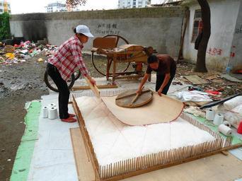 | Keywords: Quilt making 10.JPG en Blanket making in Haikou Hainan People's Republic of China A quilt maker presses a heavy wooden disk down onto the cotton batting in order to compact it 2012-01-19 own Anna Frodesiak cc-zero Uploaded with UploadWizard Quilting in Haikou Files by User Anna Frodesiak Outdoor workers in China People at work in China |
