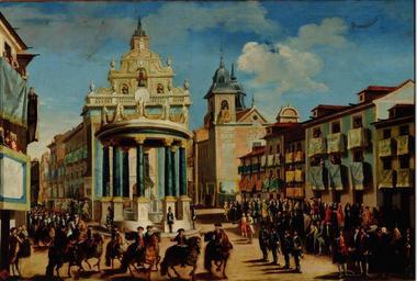 | Keywords: Quiros-puerta del sol.JPG El lienzo muestra los adornos que se colocaron en la Puerta del Sol de Madrid con motivo de la entrada en dicha ciudad del rey Carlos III que sucedió como rey de España a su hermanastro Fernando VI Hacia 1763 oil canvas Size cm 166 111 Institution Real Academia de Bellas Artes de San Fernando http //ceres mcu es/pages/Main object history exhibition history credit line accession number 0842 http //ceres mcu es/pages/Main PD-old-100 Paintings of Charles III of Spain Paintings by Lorenzo Quirós in the Royal Academy of Fine Arts of San Fernando Puerta del Sol in the 18th-century 18th-century paintings in the Royal Academy of Fine Arts of San Fernando Historical images of Madrid 1760 Cities in the 18th century Spain in the 1760s Streets in art |