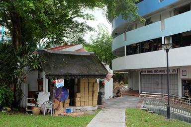 Keywords: balestier neighbourhood singapore public domain publicdomain pastel blue hdb hill shopping centre outdoor architecture building Houses a photostating shop Houses a photostating shop
