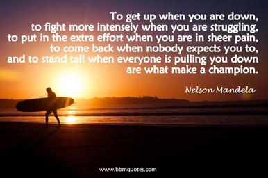 | Keywords: sunset champion quote quotes To get up when you are down, to fight more intensely when you are struggling; to put in the extra effort when you are in sheer pain, to come back when nobody expects you to, and to stand tall when everyone is pulling you down are what make a champion. www.bbmquotes.com/quote-by-nelson-mandela-2/ To get up when you are down, to fight more intensely when you are struggling; to put in the extra effort when you are in sheer pain, to come back when nobody expects you to, and to stand tall when everyone is pulling you down are what make a champion. www.bbmquotes.com/quote-by-nelson-mandela-2/ |