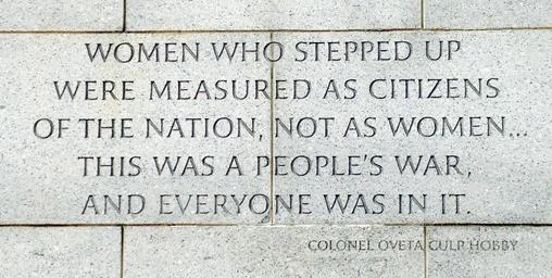 Keywords: quote women stone carving inspirational memorial monument colonel ovet culp hobby war wartime historic inspiring