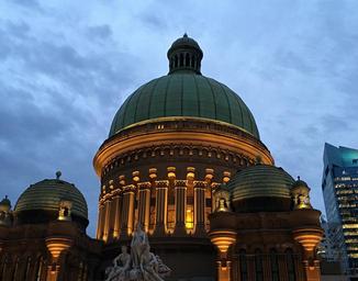 Keywords: qvb sydney queen victoria australia statue nsw dome sandstone evening dusk city